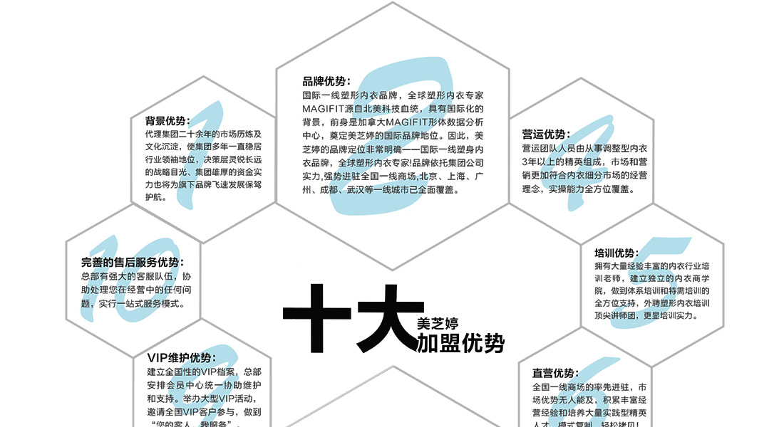 加拿大MAGIFIT內衣有限公司的前身是MAGIFIT國際人體數據分析研究機構,由全球知名的醫學博士、美容美體專家組成,是國際知名塑形美體機構、服裝品牌、面料商的戰略合作伙伴。2009年,公司推出同名品牌高端塑形內衣—MAGIFIT(美芝婷),依托公司人體數據分析、科技面料的研發背景,研發的產品裁剪立體、穿身舒適,上市即贏來了“快而舒適”的“塑形內衣專家”稱號!